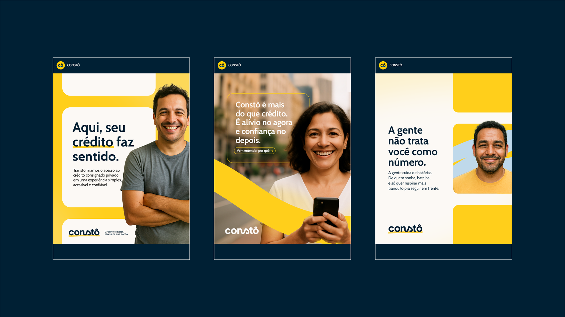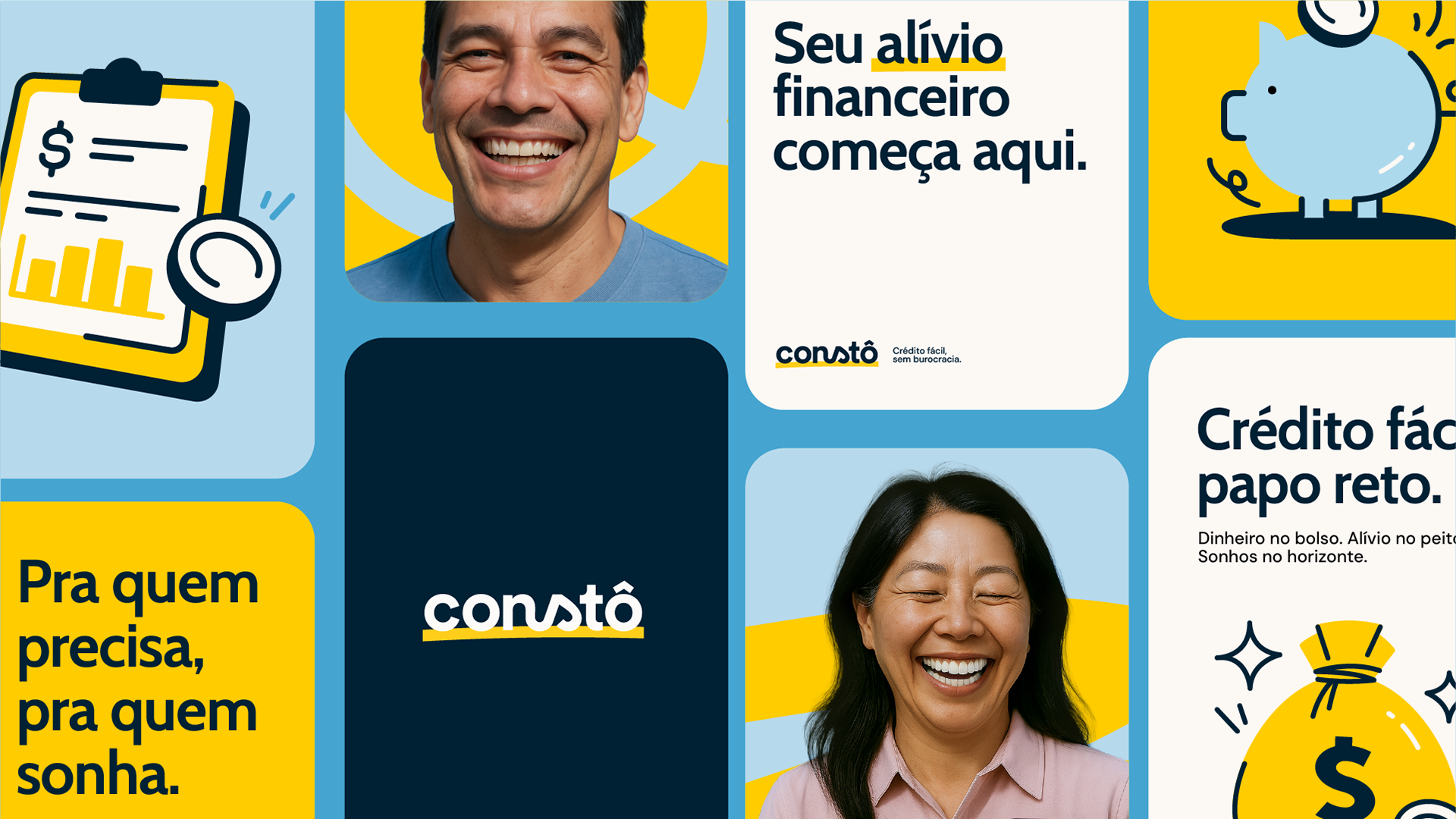 A CONSTÔ surgiu com um propósito claro: ser uma empresa de confiança que entrega crédito de forma acessível, empática e sem complicações. O desafio estava em criar uma marca que se diferenciasse de bancos e plataformas genéricas — transmitindo simplicidade, proximidade e apoio real, sem parecer amadora ou pouco confiável.