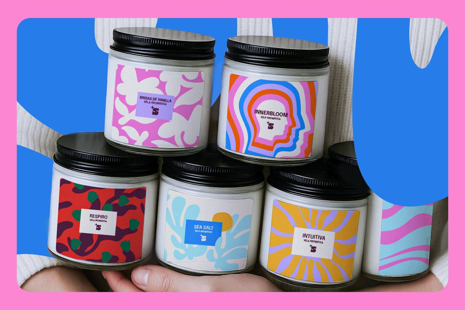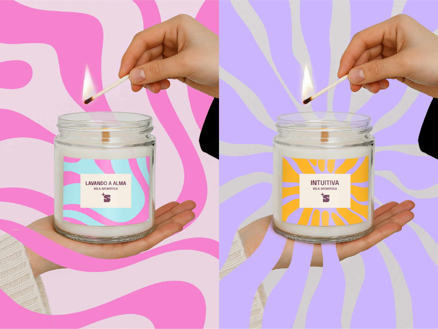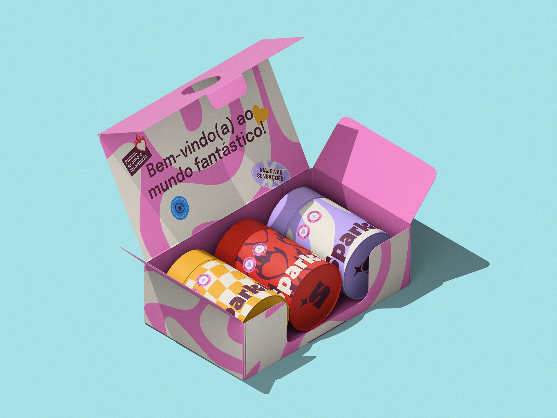 As embalagens foram desenvolvidas para ampliar a experiência da marca desde o primeiro contato. Cada aroma possui sua própria identidade cromática e uma narrativa sensorial específica, alinhada aos efeitos emocionais que proporciona. O sistema visual permite uma organização clara das linhas de produtos e valoriza a exposição tanto em lojas físicas quanto no ambiente digital.